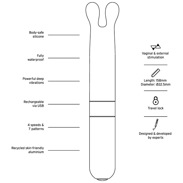 Love Not Warバレットシリーズは、美しいデザイン性とサステナブルであること、どちらも兼ね備えた素材「リサイクルアルミニウム」をベースに作られています。 お肌に直接当たる先端部分は、ふんわりとソフトな心地よいシリコン。 表面がベタつかず、なめらかですべすべしています。 柔らかさを保ちつつもホコリは付きにくく、洗い流してお手入れすることが簡単です。 撫でるように繊細な振動から、お腹の中心に向かって響きわたるパワフルな振動、さらに、リズミカルな脈動まで、全10種類のバラエティに富んだ振動パターンを選べます。 ボタン一つでシンプルな操作。 便利なのはトラベルロック機能。 トラベルロック機能で持ち運びに便利。 30分以内であれば1mまで浸水可能な完全防水仕様なので、万が一浴槽に落としてしまっても安心。 バスルームでも楽しめて、使える幅も広がます。 ●素材:シリコン、リサイクルアルミニウム、リサイクルABS樹脂、バイオプラスチック●充電方法:USB●充電時間:フル充電2時間●連続使用可能時間:最大1時間●振動パターン:10(振動強弱4段階+リズムパターン6種)●防水:完全防水(IP67)●トラベルロック機能つき ※こちらの商品は受注発注商品の為、ご注文から発送までに3、4営業日掛かる場合が御座います。