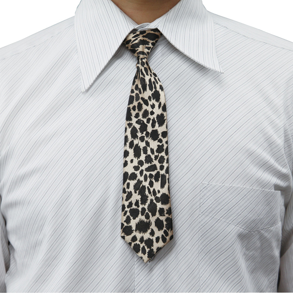 ちょい悪系を目指す貴方に、小物でレオパード柄のネクタイはいかがですか?全長はおよそ25.4cm、大剣幅は6.6cmで、派手なデザインではありますが、光沢感のある生地と黒1色の斑点が、どこか落ち着いた印象を与えるサイズ調整可能なネクタイ。 ホックベルトで調節することで、首周りの太い方でも細い方でも身に着けていただけます♪パンク系ファッションに用いてもオシャレなアクセントになりそうですが、男性ならダークカラーのお洋服と合わせればちょい悪オヤジ感を出すこともできそうですね。