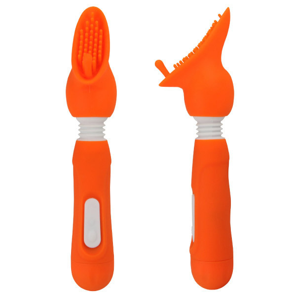 ニューデザインで、新たな快感を!細長いブラシ型ヘッドのローター「シルフィーミニ・オム ハニームーン」オレンジ。 ヘッド部分に柔らかい無数の突起と、クリ用突起を配置!ネック部分が自在に曲がるので、女性器にぴったりとフィットします。 振動機能は、6パターンの可変バイブレーションを搭載!ソフトな振動ですので、初心者の方でも安心です。 生活防水仕様&ブラシ部分は取り外せるので、メンテナンスも簡単です。 単4電池×2本付属。