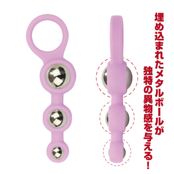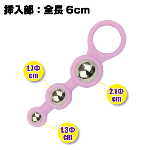 しなやかでソフトなシリコン素材の中に、重みのあるメタルボールをはめ込んだ異素材の出会いが新鮮で刺激的!小・中・大3種類のボールで快感も徐々に大きく…。