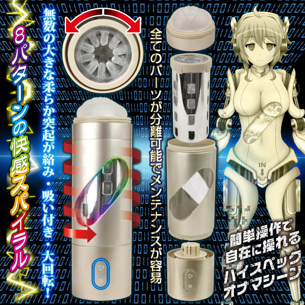 近未来感たっぷり!ギュンギュン回るアンドロイドのアソコを想定した充電式の電動オナホール。 ●ヴァギナを造形したシリコンヘッドキャップ●柔らか突起が四方八方から突き出た半透明ホール●激しい回転を補助するスペーサー●一部窓付き・中身が見えるシャンパンシルバーのカップ●USB充電式・電源装置が詰った底部キャップ●スクリューボタン:正・逆回転を操作●二重丸ボタン:8種のパターンから選択●USB充電コード付属。 5つのパーツに分解可能!メンテナンス性も優れたオナニーマシンです。