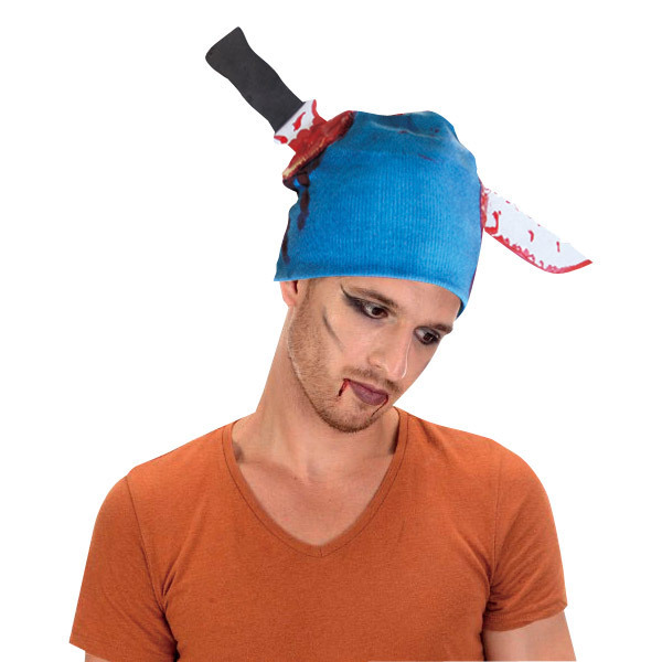 テッパンネタにどうぞ!頭にナイフが刺さったびっくり帽子。 ●深めにかぶれるワッチキャップ●鮮やかでポップなブルーカラー●グサリ!ナイフ貫通デザイン●リアルな血のりペイント付き●男女不問なフリーサイズ。 ポップでオシャレな帽子に、大きめのナイフがぐさりと刺さっちゃった!頭を見事に貫通している様がリアルなのに、なぜかクスッと面白いユニークアイテム。 ハロウィンや宴会などのイベントにぜひどうぞ。