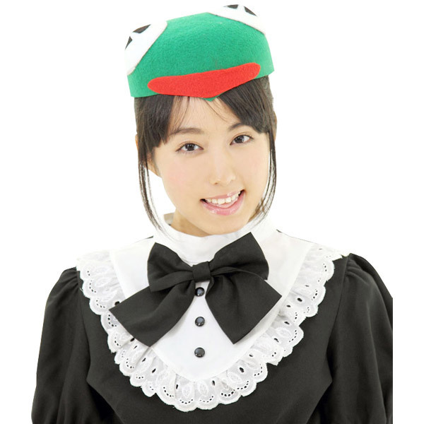 ●ビビッドなグリーンカラー●ニッコリ笑う細長く赤い口●立体的に作られた大きな目●半円型のかぶりやすい形。