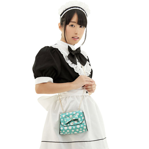 たっぷりとフリルを使ったボリュームがあるコスチュームにマッチする、ミニマルサイズの台形ポシェットです。
