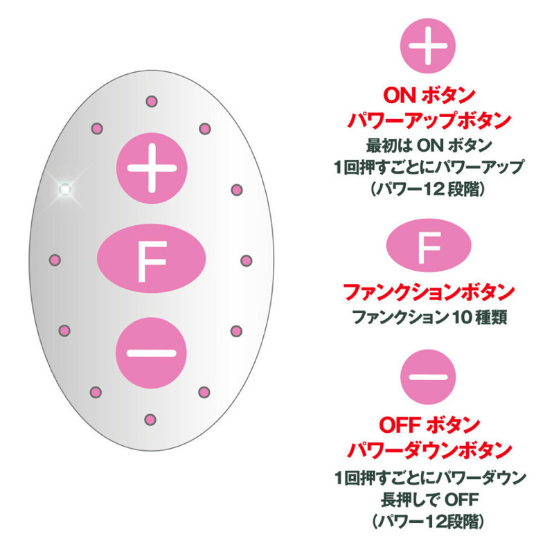 小さいからと侮るなかれ!強力な機能を秘めた超コンパクトローター。 ●女性の指先程度の全長4cmサイズ●狙った場所を捕えやすい超小型●微〜激まで12段階の強弱切り替え●抑揚を楽しめる10種リズム機能●+…電源ON、弱→強●-…電源OFF(長押し)、強→弱●F…リズム切り替え●生活防水&静音設計。 優しい愛撫のような刺激も、荒々しいワイルドな快感もこれ一つでオールOK!120種類ものバリエーションで飽きることなく楽しめるマルチローター。 最高14000回転ものハイパワーなので、可愛さに騙されないようご注意を。