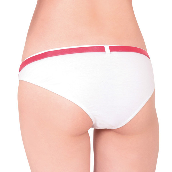 <EROX>思わず見せたくなる可愛さ!オシャレに履きこなせるベルト付きショーツ。 ●フルバックのホワイトショーツ●サイズ調整可能な赤い細ベルト●サイド部にベルトと交差する赤の縦ライン入り●左右と後ろにベルト通し付き●フルバック&ローライズタイプ。 ベルトとショーツのデザインを交差させることで、まるでリボンでラッピングしたかのようなデザインに!見せパンにもしたくなる遊び心溢れるランジェリーです。