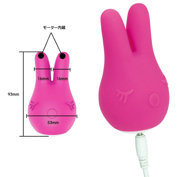 コロンとキュートな手のひらサイズ!ミニウサギ型の充電式ローター。 ●目を閉じた愛らしいフェイス●全長9.3cmのコンパクトサイズ●肌触りの良い高品質シリコン●両耳の先端それぞれにモーター搭載●6パターンのパワフル振動●お鼻のボタンを押す毎に振動切替●充電用のUSBケーブル付属。 ウサ耳で挟んだり当てたりと自由に楽しめるコンパクトローター!思わず手に取りたくなるキュートなフォルムに加えて、振動中にウサギのほっぺたが光るというニクイ仕様です。