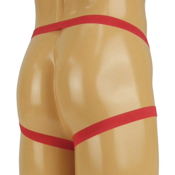 パワーリングでがっつりサポート!ジョックストラップ風デザインのメンズショーツ。 ●レッドカラーのダブルバンドデザイン●シンボルを締め付けるリング付き●しっかり丁寧仕上げの日本製。 腰&太ももにバンドを纏った、ジョックストラップ風のメンズランジェリー!股間を根元から支えるシリコンリングの締め付けで、逞しさをプラスしながらしっかりサポートもしてくれます。
