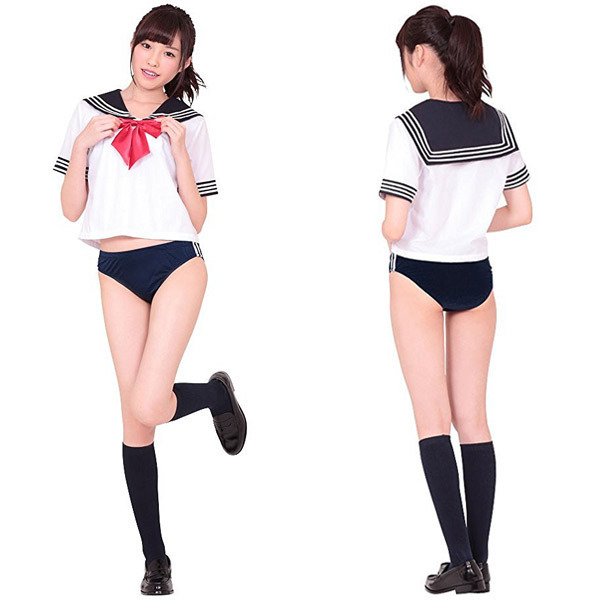 ブルマーの通販ならこれで決まりというぐらいの人気コスプレ同士の最強コンビ♪セーラー服&ブルマのスクールコスチュームセット!ブルマ・体操着といえば様々なカラーのものが出ていますがこちらは定番の紺色です。 ●ショート丈のセーラートップス●サイドライン入りの紺色ブルマ●キュートな赤リボンもセット。 学園コスプレの中でも特に人気の高いセーラー服とブルマが夢の競演!ありそうでなかった組み合わせで、向かうところ敵なしのセクシーコスチュームです♪ブルマのコスプレ用品を通販でご用命ならせひどうぞ。