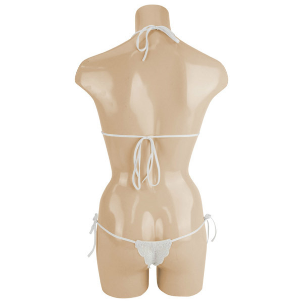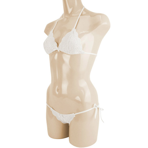 可憐な花柄刺繍を施したオールレースのセクシーブラ&ショーツセット。 ●ホワイトカラーの総レース仕上げ●可愛いスカラップレースデザイン●着心地の良いストレッチ素材●ホルタータイプのブラレット●サイドで結ぶTバックショーツ●上下共に紐でサイズ調整可能。 美しくも可愛らしいフラワー刺繍のランジェリーセット!うっすらと肌を透かす総レースでセクシーさもしっかりアピール出来ちゃいます。