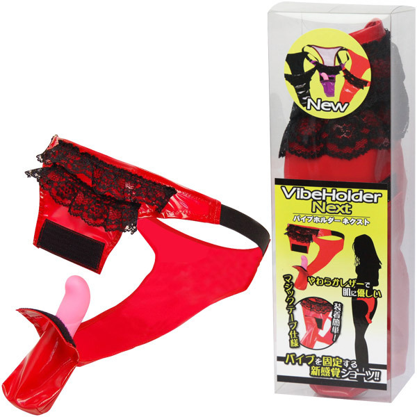 装着しやすいフロントマジックテープ式!ショーツ型の女性用バイブ固定ホルダー。 ●真っ赤なソフトレザー素材●優しい履き心地のウエストゴム仕様●ベルト調整可能なフリーサイズ●マジックテープ式で着脱簡単●ホルダーは直径4cm前後のバイブを収納可●フロントにブラックレース付き。 フロント部分がマジックテープなので、バイブの装着がとってもスムーズ!手放しでもしっかり固定出来るので、空いた手で他の部位を責めたりなど、様々なプレイをお楽しみいただけます。