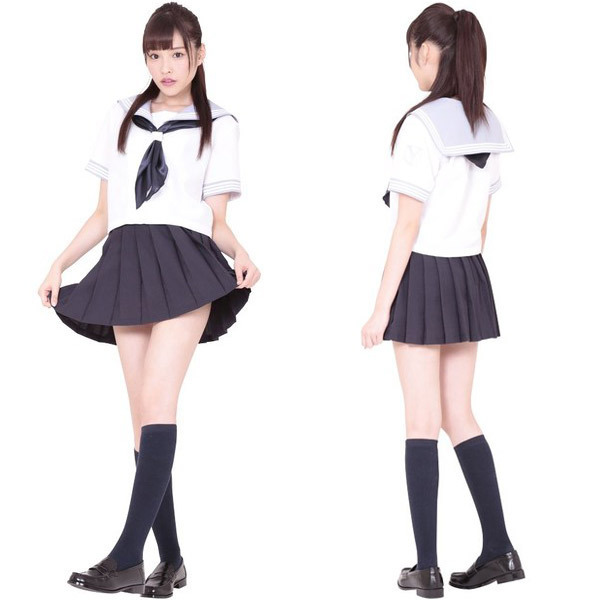 シンプルだけどとってもキュート♪誰もが好きな清純派セーラー服コスプレ。 ●セーラー服王道のネイビー×ホワイトカラー●校章入りの夏用半袖トップス●パステルカラーのセーラー襟●ひらひら風になびく可愛いプリーツスカート●オシャレのワンポイントになるスカーフもセット●女性用Mサイズ。 青春時代の淡い思い出が蘇る、清純なイメージを与えるセーラー服コスチュームです。