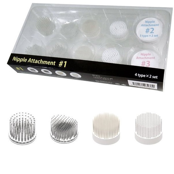 乳首をさらにイジめ倒す!ニップルドーム専用の多種多様なアタッチメントセット。 ●別売りの乳首吸引ローター専用●両乳首で楽しめる全4種×各2個●ニードル:丸く窪ませたすり鉢状●デンス:中央に向けV字に凹む形●ソフト:筆先のようにソフト極細●ハード:やや硬く刺激度も高め●ニードル&デンスはシリコン製●ソフト&ハードはブラシ形状。 強力な吸引力とパワフルなバイブレーションでマニアに人気!ホワイト(b23826)・ブラック(b23838)の二色が好評なニップルグッズをディープに楽しめるアタッチメント。 両乳首で同じ刺激を楽しむもよし、敢えて別々にして3P感覚を楽しんでもよしです。