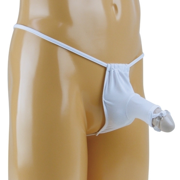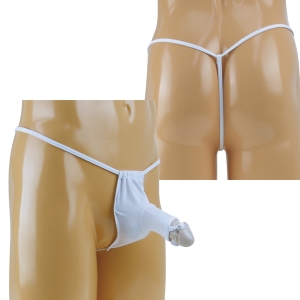 誇らしく主張する斬新デザインでより逞しく♪フロントの幅を自由に調節できるふんどしデザインの男性用オープンショーツ。 ●すっきりとしたホワイトカラー●幅を自由に調節できるふんどし風●体にフィットするストレッチ生地●筒状のエレファント型ポケット●先端に透明のパワーリング付き●Tバックのストリング仕上げ●メンズ用Mサイズ・日本製。 開放的なセクシーデザインで隠さずに強調!穴の先にイボ付きのパワーリングも装着されたメンズショーツ。 フロント上部はふんどしのように寄せたり広げたり、自在に調節できるユニークデザイン!伸縮性のあるストレッチ素材でフィット感も抜群です。