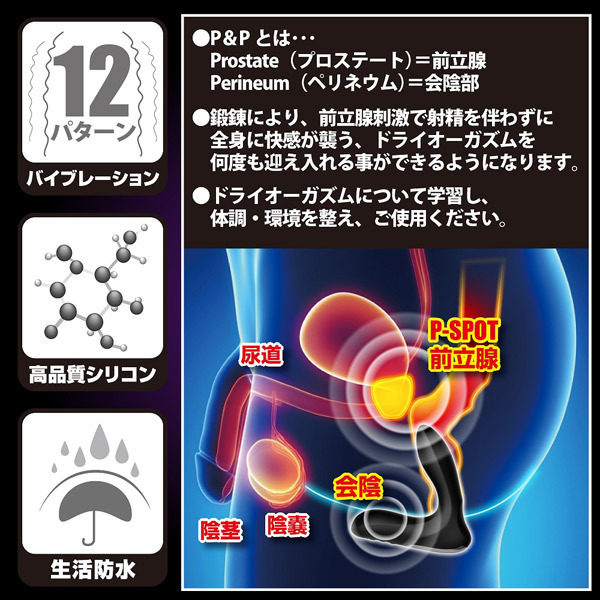 振動&膨張バルーンでアナルを拡張!前立腺(Prostate)&会陰部(Perineum)を刺激するシリコン製アナルバイブ「プリティラブ インフレータブルP&Pバイブレーター」。 最大径約5cmまで自動で膨らむバルーン拡張機能を搭載!さらに、先端の高性能モーターによる12パターン振動で前立腺と会陰部を刺激します。 高品質なシリコン製のエルゴノミック(人間工学)デザインでスムーズに装着&拡張が可能なアナルグッズ!生活防水仕様で衛生面も安心です。