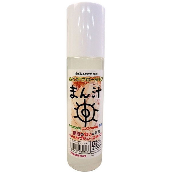 マン汁の色や粘度、匂いを再現!ティッシュで拭くだけの洗い不要ローション「ふくだけローションまん汁 200ml」。 ●リアルな半透明の乳白色カラー●愛液をイメージした匂い付き●サラサラの低粘度ながら潤い持続●肌に優しいエキスを豊富に配合●内容量200ml。 オナホにも手コキにも使いやすい洗い不要タイプに、アソコの匂いをプラスしたリアルな『まん汁』ローション!低粘度なのでユル系オナホールの内部構造もしっかりと感じ取れます。 【配合成分】アロエベラ葉エキス・ニンニク根エキス・乳酸・ローヤルゼリー・アルギニン・マカ抽出物・加水分解コラーゲン。