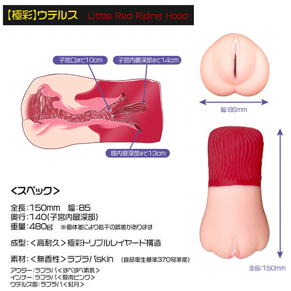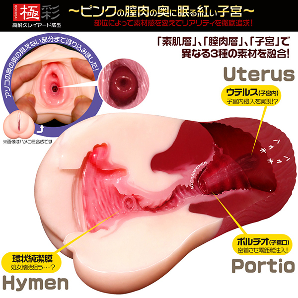 禁断の子宮脱プレイ!異なる3種の素材が融合した究極のウテルス(子宮)セックスオナホール「極彩 ウテルス」。 ●マジックアイズの極彩シリーズ●インパクト抜群のツートンボディ●素肌層、膣層、子宮の3種素材●すべすべ素肌のアウター部●膣肉ピンク色のインナー部●真っ赤に充血したウテルス部●挿入口付近に環状膜を配置●優しく包み込む柔らかな質感●高弾力な子宮口がお出迎え。 部位によって素材感を変え、リアリティを徹底追求した極彩トリプルレイヤード構造!リアルなポルチオ感触を味わえるウテルスオナホール。 ローションをたっぷり使えばギチギチの子宮内に侵入できるかも?柔肌と膣内の優しく包み込む柔らかな質感と、締まり抜群の高弾力な子宮の異なる挿入感をお楽しみ下さい。