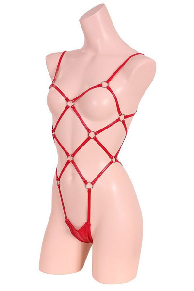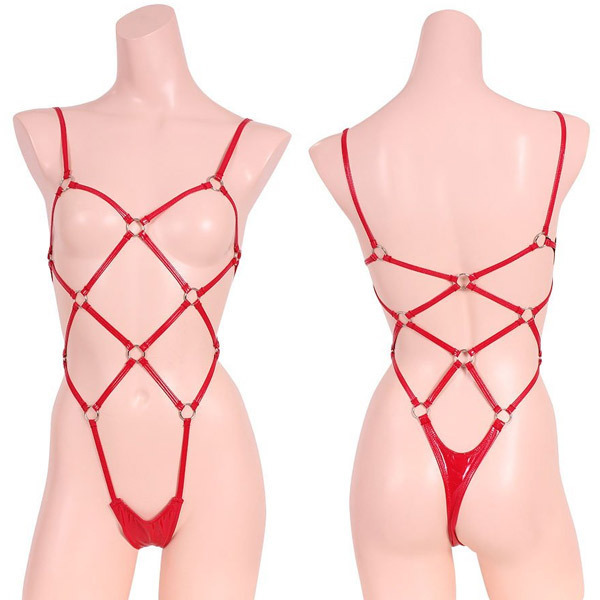 HOME > SMグッズ・拘束具 > ボンデージ・プレイスーツ他 > エナメル&リング亀甲プレイスーツ レッド