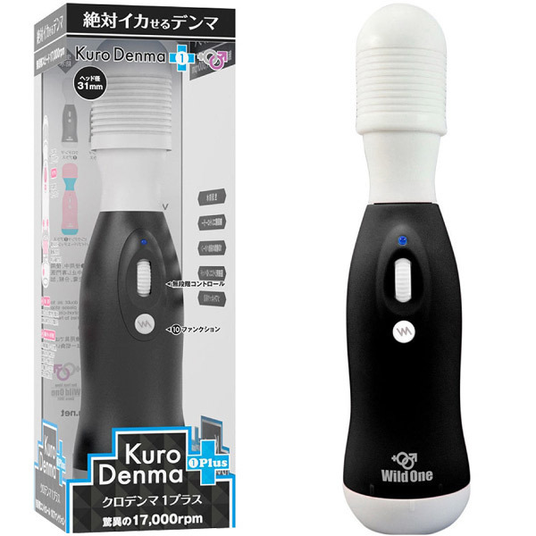 デンマの神が更にパワーアップして降臨!あの『絶対イカせる』強力電マが「クロデンマ1プラス」として登場。 内蔵モーターの改良で振動力が17000回転へとグレードアップ!あらゆるニーズを満たす10種の振動パターンを搭載し、激しいだけでなくより柔らかな重振動とより繊細な微振動まで女性が求める甘くささやくような愛撫的な振動を実現しました。 振動の強弱はダイヤル式の無段階コントローラーで自由自在に調整が可能。 ヘッド径3.2Φcm対応のアタッチメントを装着可能なヘッド部分は、しなるように曲がるネック一体型の医療用シリコン製!汚れが気になったらすぐに水洗いできる生活防水仕様でいつでも清潔です。 また、電池ボックスも改良され、底部を回して電池を入れるだけの簡単仕様でさらに使いやすくなりました。