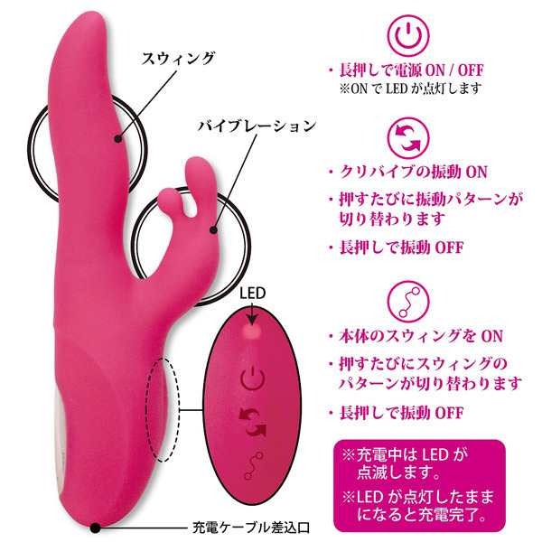 性感帯をグリグリ刺激!滑らかな『生きたスウィング』を体感できるシリコン製の高性能バイブ「シークレットガーデンツイストダンサー」。 一定方向へのシンプルなスイングから、左右へ不規則に回転するダンサーの腰のようなクネリ感のある動きまで、6種類の回転パターンを搭載!Gスポットを押し上げるように膣全体をかき回す快感スイングで、かつて無い絶頂へと導きます。 全16パターンの強力振動がクリトリスをピンポイントで愛撫します。 USB充電式(専用コード付属)。