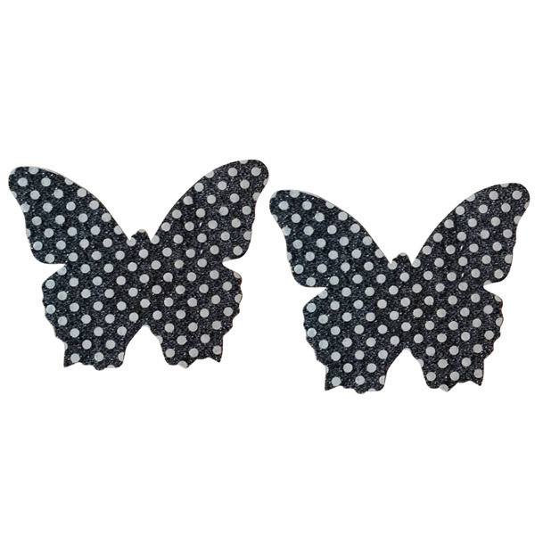 ピタッと貼るだけの簡単仕様♪バストトップに貼るだけで、セクシーな大人の雰囲気を醸し出す下着感覚のニップルジュエリー「ニップルシール ドットバタフライ 黒」。