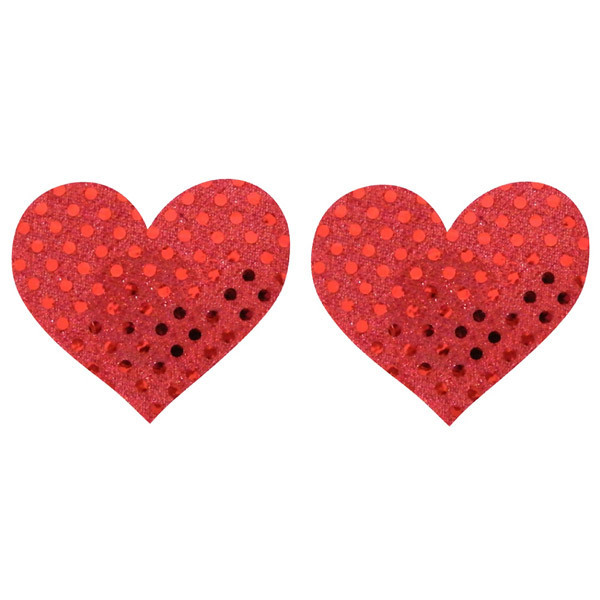 ピタッと貼るだけの簡単仕様♪バストトップに貼るだけで、セクシーな大人の雰囲気を醸し出す下着感覚のニップルジュエリー「ニップルシール ドットハート 赤」。