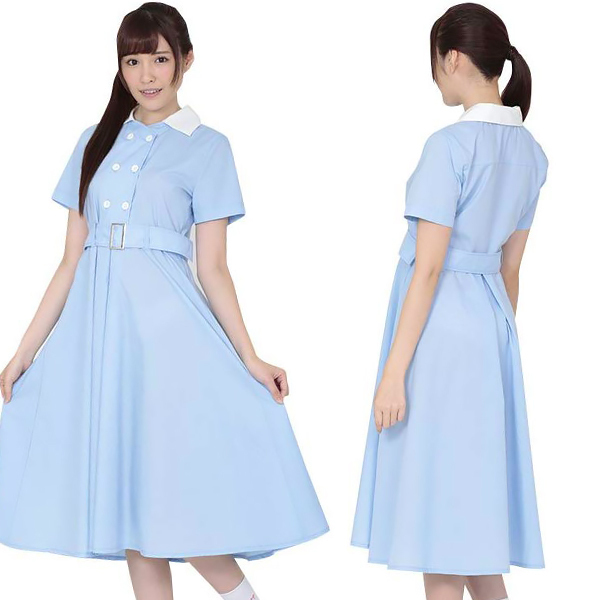 さわやかな印象を与えてくれる女子高生ブレザーの制服コスプレです。 清楚なパステルブルーのカラーに白襟が、上品な印象と少女らしさを兼ね備えた可愛らしさを演出してくれます!ワンピースタイプでふんわりと広がるガーリーなスカートは、自然なスリットも入っていて学生気分に浸りたいときにもオススメ。 襟には真っ白な6つのダブルボタンが付いているため、アニメに出てくる制服のような可愛らしさを併せ持っています!イベント用としてもどうぞ。