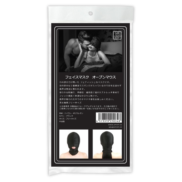 視界を遮り興奮度を高める「<SM VIP>フェイスマスク オープンマウス」の登場です!口の部分だけがオープンになった全頭タイプのフェイスマスクは、伸縮性や通気性に優れたストレッチ素材。 顔にしっかりフィットするうえ、フリーサイズだから男女問わずにお使いいただけます♪目の部分はスポンジが2重構造で入っていて、パートナーの視界を優しく遮ってくれるから、被った時のストレスも少なくSMプレイを楽しめるのではないでしょうか?フェイスマスクだけでなく別で手枷や足枷を併用すれば、もっとプレイに深みをもたせることができそうですね。