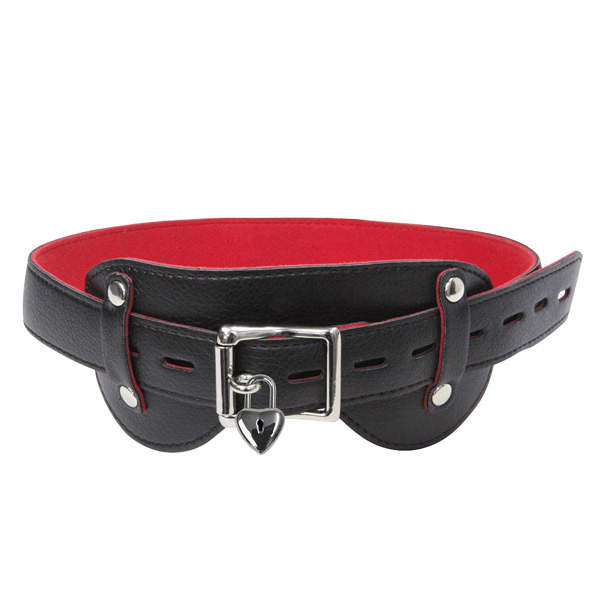 赤×黒のカラーとハードな質感が非日常へ誘う「Abyss」シリーズより、合皮製のアイマスクが登場。 目元をガッチリ固定するベルトはハート型の鍵付き!ハードな中に可愛さをプラスした個性的なデザイン♪また、正面からベルトを締められるため着脱しやすく締め付け調整も簡単で、余計な手間がかからないからプレイもスムーズ!使用後のお手入れは乾いた布でサッと拭くだけと、機能面でも使いやすい逸品。 自分で使うのは勿論、Mなパートナーへのプレゼントにも喜んでもらえそうなフェイクレザー製のアイマスクです♪