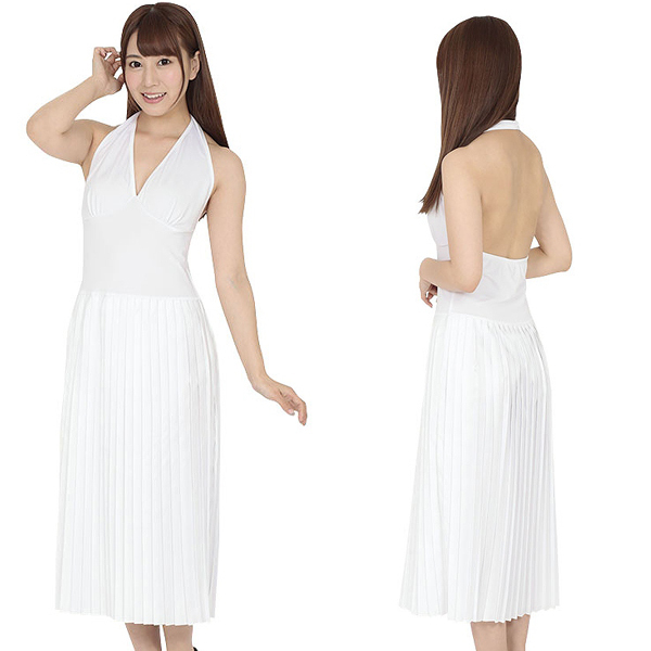 1900年代、あの名女優が演じ、纏った衣装をモチーフとしたホワイトカラーのハロウィンコスプレ。 大胆にV字カットされた胸元と大きく開かれたバックスタイルは、20世紀最強とも言えるセックスシンボルにも引けをとらないセクシーさで貴方を輝かせる♪吹き上げる風を演出することでプリーツ多めのスカートがふんわりと優雅に広がり、あの名シーンが再現できちゃうかも!?お好みでタトゥーシールを貼って更なるハロウィン気分を味わうのも♪