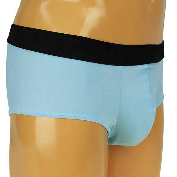着心地抜群で男の魅力を最大限に際立たせてくれるメンズショーツが登場しました♪夏にぴったりの流行色であるブルーに注目!涼やかな印象を与えてくれるブルーカラーは貴男自身だけでなく、パートナーにも爽やかな印象を与えてくれるでしょう。 フロント部分は立体縫製となっているので収まり感は抜群!上下左右にしっかりとフィットしながら高い伸縮性が期待できます。 腰回りの部分は太くてワイルドなゴム紐を採用しているので、ヒップを優しく包み込みながら貴男自身をたくましく、そして美しく魅せてくれるでしょう♪フルバックタイプなので普段履きとしても十分にお使いいただけますよ!