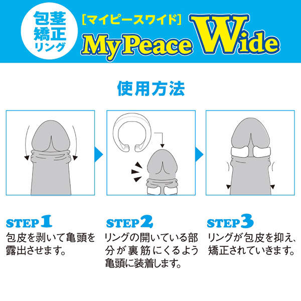 ロープライスで人気の包茎矯正用リングが3倍ワイドになってバージョンアップ!従来よりもズレにくく、さらに外れにくくなりました。 包皮を剥いてワンタッチ装着することで亀頭を露出し、清潔さをキープ!付けていることで段々と剥きグセがつき、男らしい剥きグセへと近づけてくれます♪最大の特長は尿道や裏筋を締め付けない特許取得済み(意匠登録第1544081号)のオープンなC型リングと、人間工学に基づいた3D特殊形状。 丸みを帯びた特殊形状の両端はズレにくく、リング内側の絶妙な傾き加工がカリ首にジャストフィットし分厚い皮の逆流を堤防のようにせき止めてくれます。 男性のデリケート部分に直接触れるからこそ、信頼性の高い日本製エラストマー「メディカルスキン」を採用♪勃起時にも自然と広がることで一定のテンションでサオをホールドし、うっかり脱落させて紛失してしまうこともありません!こちらはソフトな夜用のMサイズになります♪