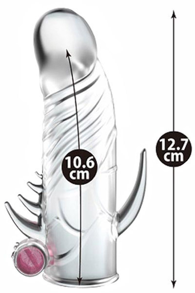 !2cm伸長でロングプレイを楽しもう♪更にモーターの振動でパートナーへの刺激もアップ!伸縮性抜群でジャストフィットの柔らか素材●使い切りローター付