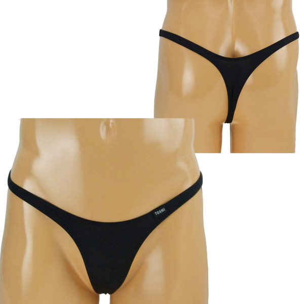 シンプルだけど大胆に魅せる!伸縮性の高い2wayストレッチ生地の男性用Tバック(黒)。