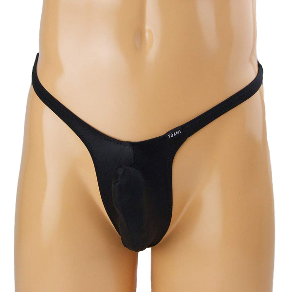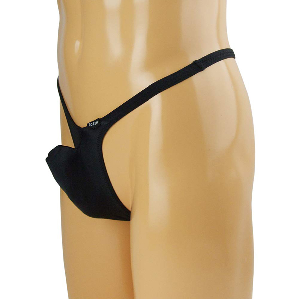 男のシンボルを逞しくセクシーに魅せる上向き縫製の日本製メンズ用Tバック(黒)。