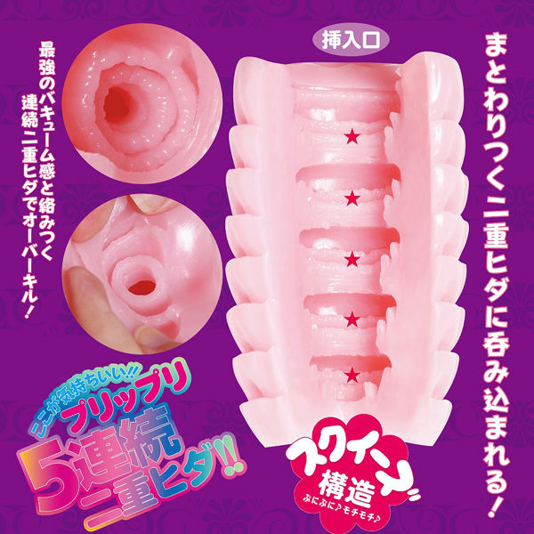 もっちり柔らかな二重ヒダが5連続で刺激する日本製の非貫通オナホ。