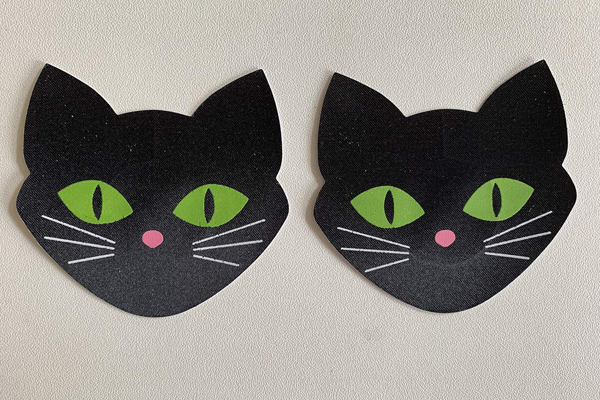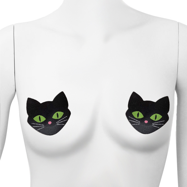 猫の目が暗闇で妖しく光る!蓄光仕様の黒猫ニップレス(2枚1セット)。