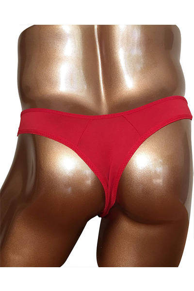 赤と黒のカラーリングでワイルドにキメるメンズ用ビキニパンツ。