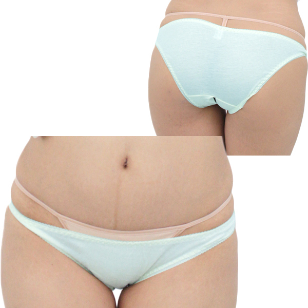 肌触り柔らかく伸縮性の高い綿素材を使用したインゴム仕様の日本製フルバック(水色)。