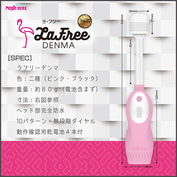 柔軟に曲がる長いフレキシブルネックがピンポイントにフィットするピンクカラーの電マ「ラ・フリー」(電池式)。