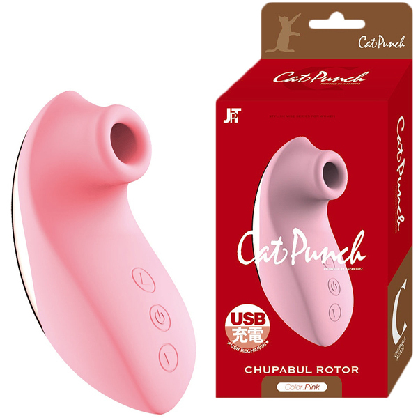 高品質かつ低価格をモットーに掲げた新ブランド「Cat Punch(キャットパンチ)」より、吸い付き刺激が堪能できるUSB充電式チュパブル振動ローター(ピンク)。
