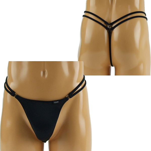 程よい露出とお洒落なダブルストリングデザインでセクシーな男を演出するハイレグ仕様のGスト(黒)。