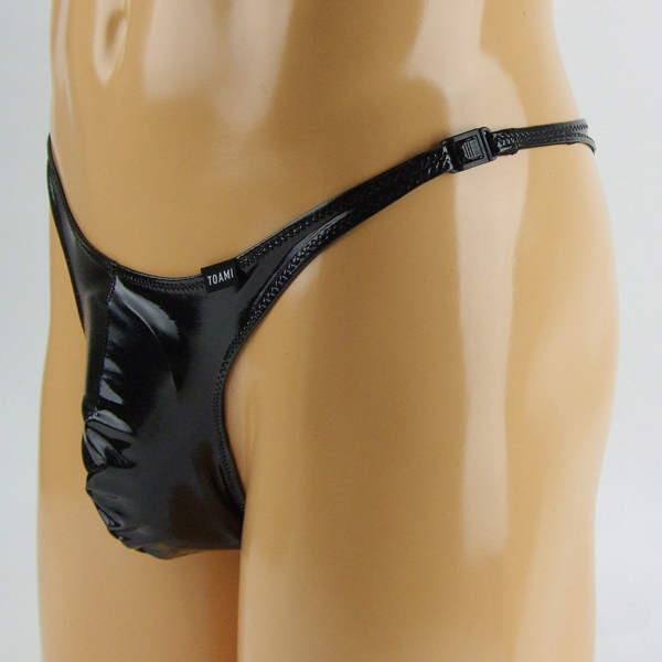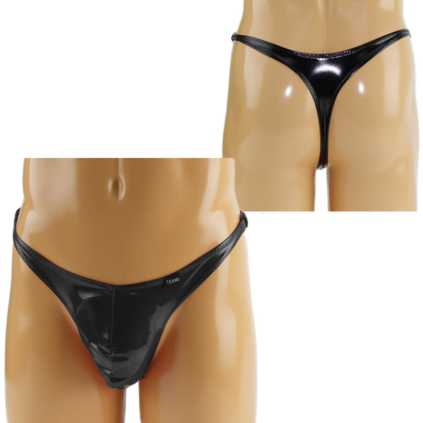 滑らかな光沢とピッチリ具合が特徴のセクシーなエナメルTバック(黒)。