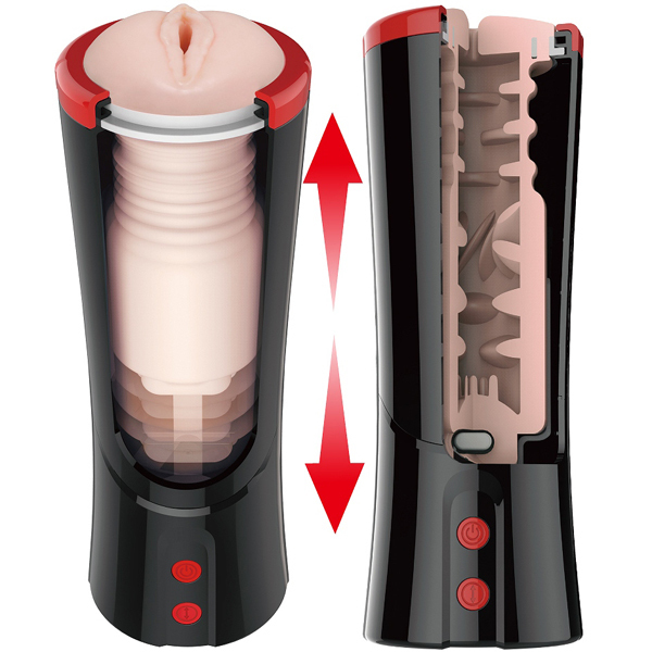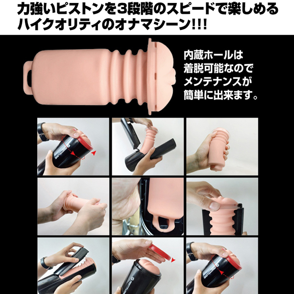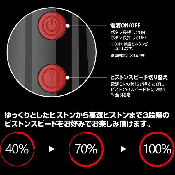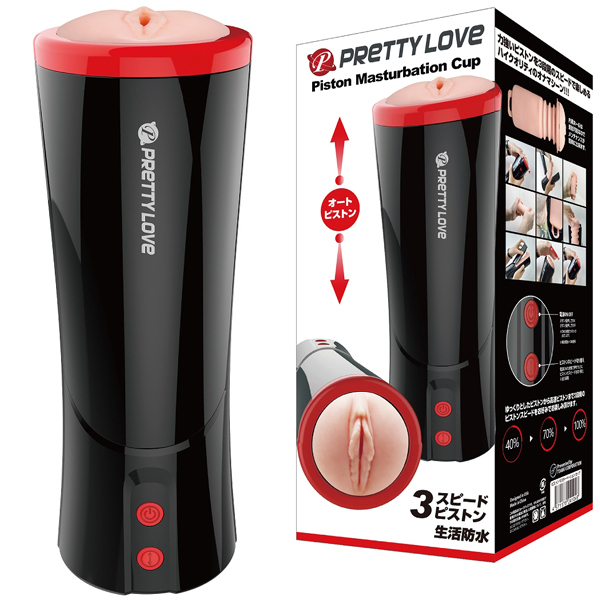 3段階のスピードで強力ピストンを味わえる!プリティラブシリーズに黒×赤の洗練されたデザインが特徴的な電動オナホが登場(単四電池を3本使用)。
