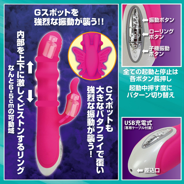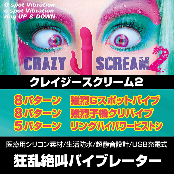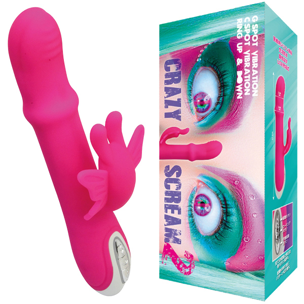 あまりの快感に女性が乱れまくると好評のバイブ「CRAZY SCREAM」に第2弾が登場!バタフライ型の子機が特徴的なUSB充電式バイブ。