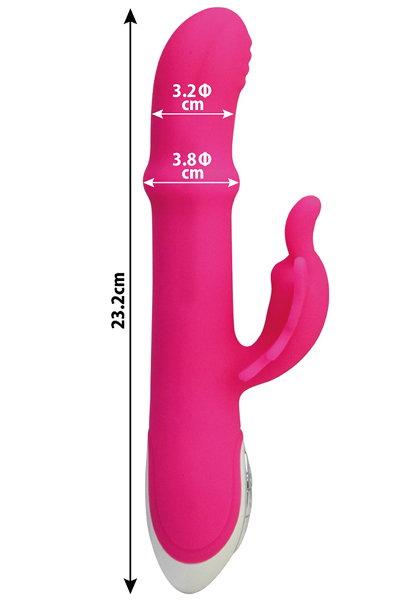今作もクレイジーなアクション満載♪Gスポ振動8パターン×子機振動パターン8種類×5種類のピストンの3拍子でイキ狂わせる!素材には医療用シリコンを使用、お手入れ簡単な生活防水仕様。