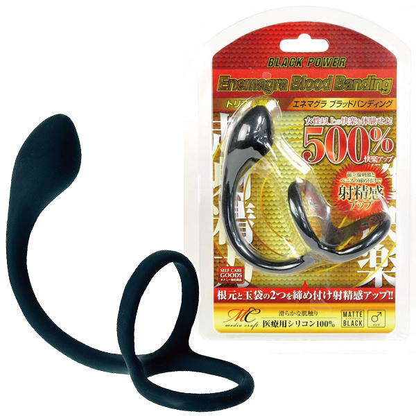いつもの射精感がさらにアップ!根本と玉袋の2つを締め付けながら、前立腺への刺激と会陰部の圧迫も行える100%医療用シリコン素材のコックリング付きアナルプラグ「エネマグラ (ブラッドバンディング)」です。 挿入部分の最大経は3cm以下と初心者の方でも挿入しやすい形状になっていて、4cmほどのリング部分はソフトなシリコン素材、エネマグラ部分もシリコンなので、同シリーズの他の商品と比較しても最も初心者に適したエネマグラとなっています!キツめでハードな締め付けを望む方には不向きですが、これから前立腺責めにチャレンジしてみようと考えている方には特におすすめの逸品といえるでしょう♪