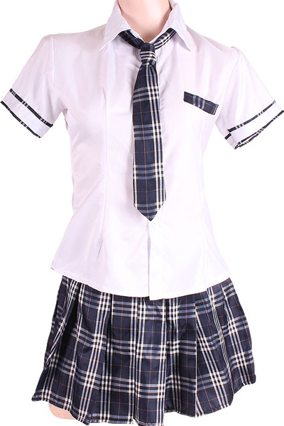 英国風のトラッドスタイルでお洒落な学生に変身!チェック柄が可愛い海外風の半袖制服コスプレ。 モノトーンカラーのチェック柄ネクタイとミニ丈プリーツスカートがとってもキュート!全体的に統一感のあるデザインでクールに決めた外国風のスクール制服です。