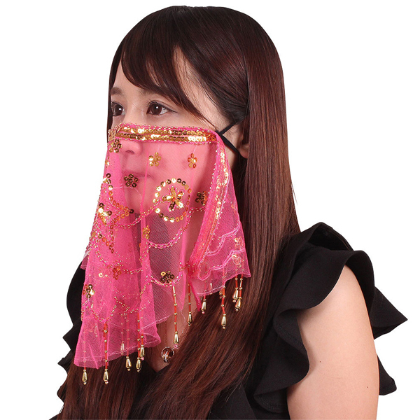 通気性の良いシアー素材で口元が湿らずメイク崩れしにくく、透けて見える分、相手に表情が伝わり相手にも好印象♪スパンコールの輝きがアラビアンな雰囲気を作り出す、お洒落で可愛いフェイスベールです。
