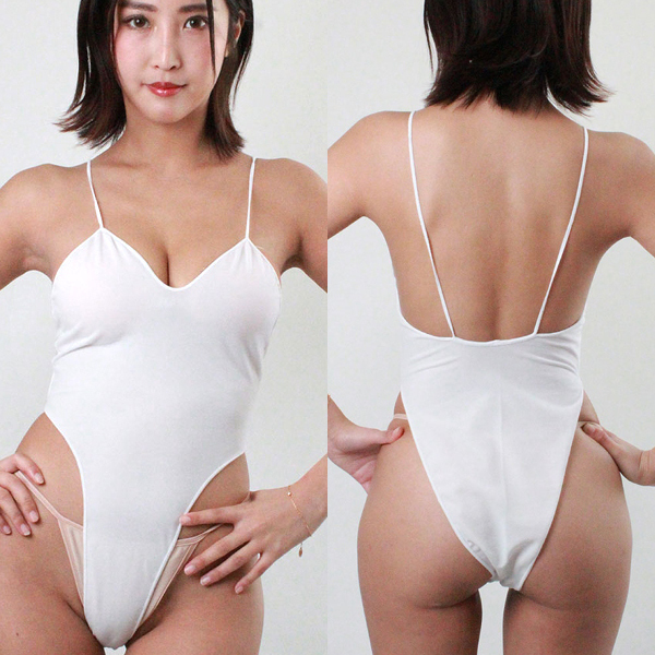 少し透け感があり、上下左右によく伸縮するサラサラとしたガーゼ生地を素材に使ったレオタードです。 フロント部分は局部のカットがキワドイラインで入っていて、ボディにぴったりとフィットする素材感もプラスして大胆さは抜群!清潔感たっぷりのホワイトカワーにヒップの曲線、局部のきわどさ、タイトな着心地で他にはないギャップを演出してくれます♪いつもと違うプレイをしたいときや彼氏を誘惑したいときにもおすすめですし、大胆に色気を出したいときにも大活躍です。 ◎ホワイト、Mサイズ